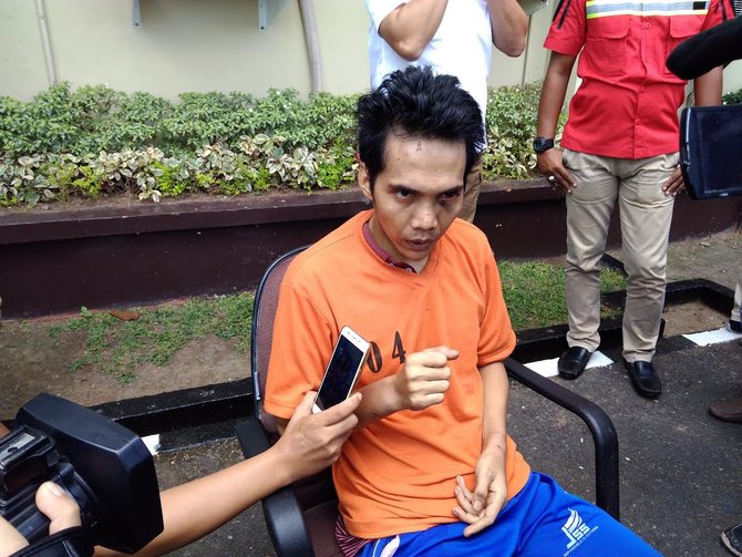 Dengan mengenakan baju tahanan warna oranye, Asworo langsung dikerumuni awak media di halaman Mapolda Sumsel, Rabu (14/6). Kasus ini menjadi salah satu perhatian karena perbuatannya cukup sadis.